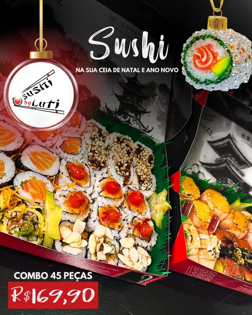 🎄 🍱🍱 4 Jhow Nero 6 Uramaki Skin 6 Uramakis Chilli 8 Niguiris Variados 8 Uramaki Filadelphia 3 Hossomakis Vegano 6 Hossomakis Filadelphia 3 Uramakis Super Saiyajin