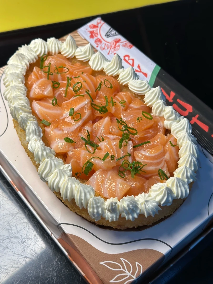 SALMÃO CRU (80g) CAMARÃO EMPANADO (70g) CREAMCHEESE CREME CHEDDAR CRISPY DE BATATA DOCE CRISPY DE ALHO PORÓ MOLHO DE OSTRA SWEET CHILLI Base: 250g de Arroz Japonês Empanado e Frito. Embalado lindamente para uma ocasião especial! Total 600g